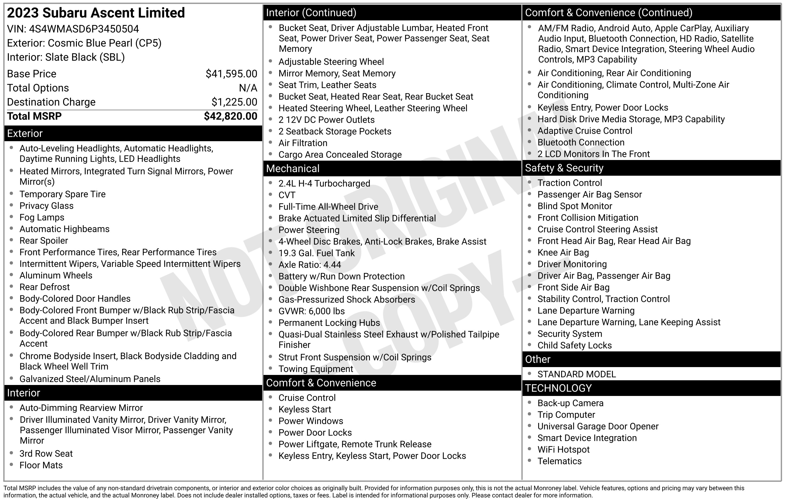 • VIN # 4S4WMASD6P3450504