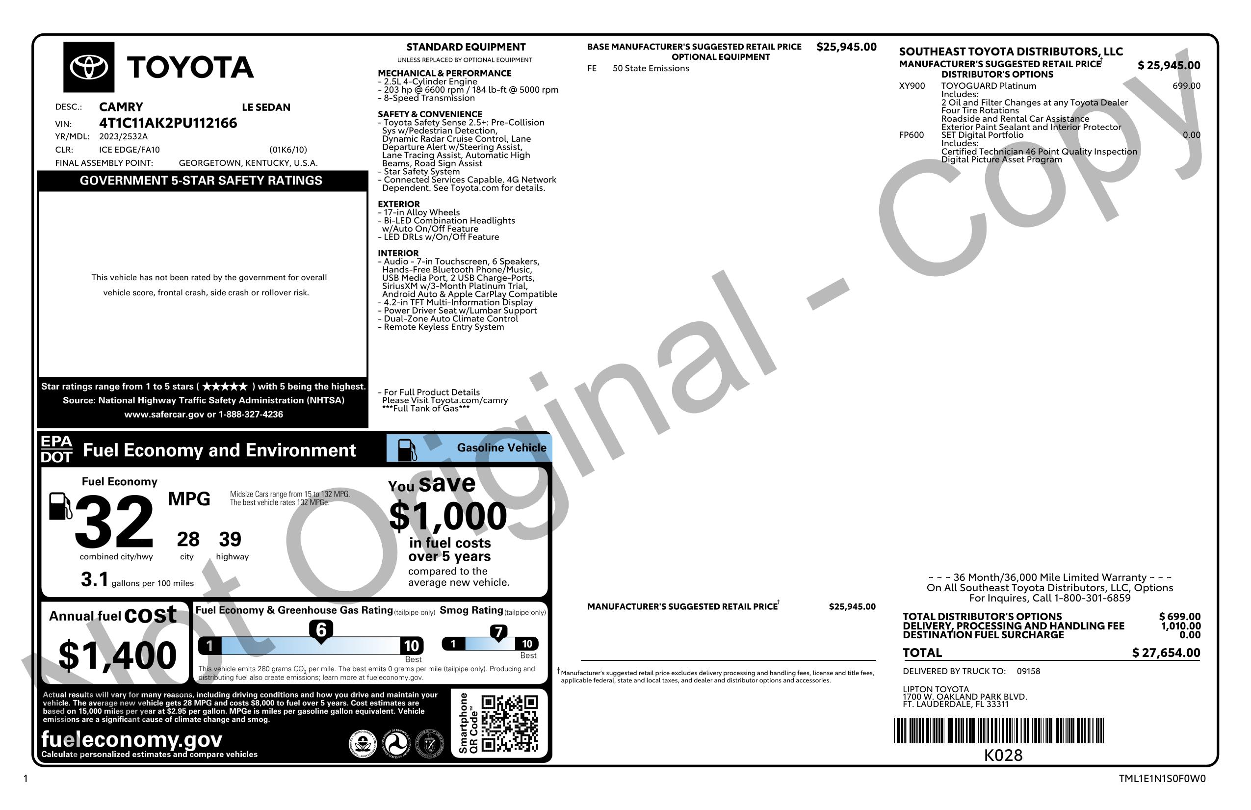 Built with a reputation for being the gold standard of the American commute, this 2023 Toyota Camry LE (Stock #PU112166) arrives with 73,283 miles and a focus on serene ride quality. This particular unit shines as a long-distance cruiser, utilizing its 2.5L 4-cylinder engine and a highly refined suspension to soak up road imperfections while sipping fuel at an impressive 39 MPG highway.The LE's interior is a masterclass in ergonomics, featuring intuitive physical controls for the dual-zone climate system and a driver-centric cockpit that prioritizes visibility. While it packs the latest tech like Apple CarPlay and Android Auto , its the peace of mind provided by Toyota Safety Sense 2.5+which includes Full-Speed Radar Cruise Controlthat makes it feel like a much more expensive executive sedan. With its sleek roofline and a cavernous trunk ready for a week's worth of luggage, this Camry is the perfect choice for the driver who wants to set it and forget it when it comes to vehicle dependability.Previously rental vehicle . Visit Car2Sell online at car2sell.us to see more pictures of this vehicle or call us at 888-703-0003 today to schedule your test drive.We Finance Good and Bad credit. Warranty available. Prices include(s) all costs to be paid by a consumer except for licensing costs registration fees taxes and delivery charges.