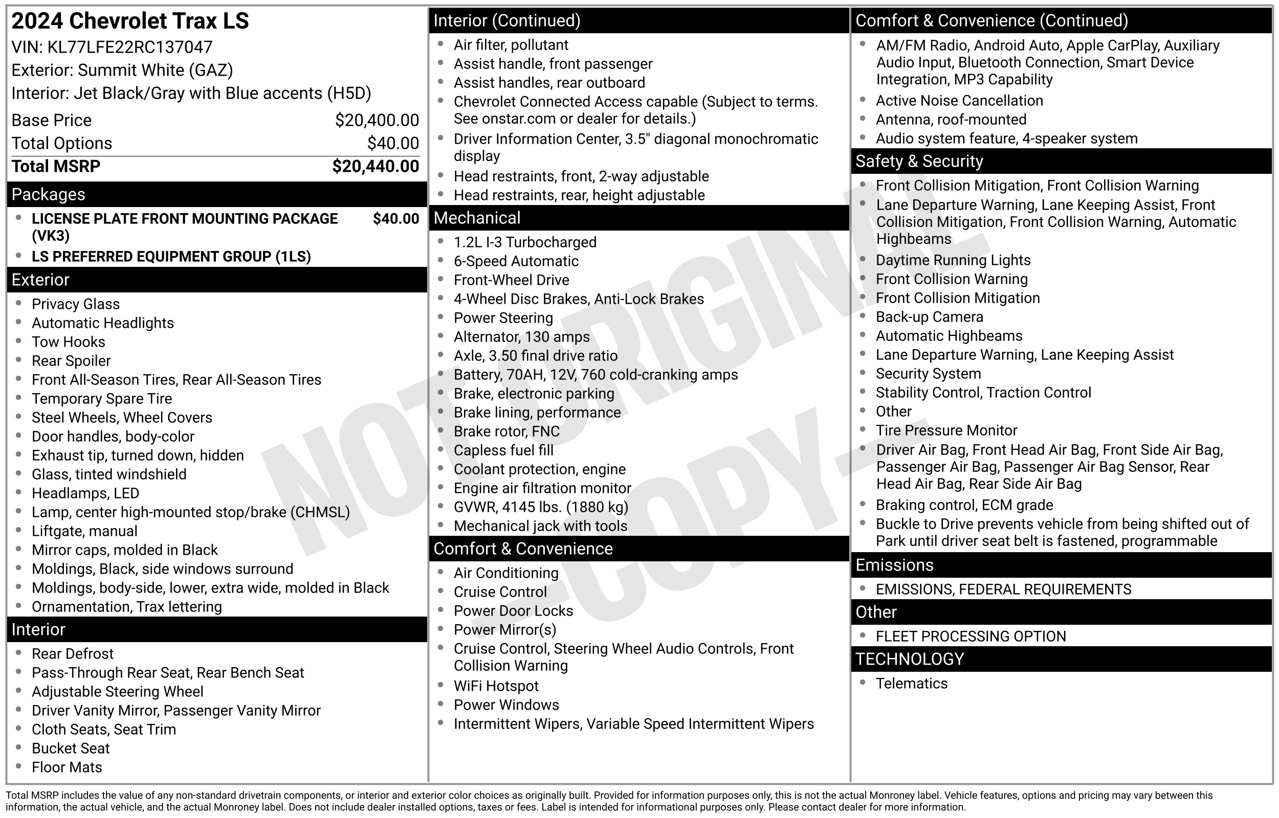 These terms, including monthly payment and Annual Percentage Rate (APR) are estimates, and are not final until your financing is completed at Car2Sell. Estimated APRs are provided by a third party as examples only. The estimated APRs may not be available to all consumers within a particular credit score range, and are not an offer of credit. Estimated terms are subject to change. Rates may depend on your credit and key financing characteristics, including but not limited to the amount financed, term, loan-to-value ratio, down payment amount, and vehicle characteristics. An estimate of tax, title and license fees is not included in the Total Amount Financed, however you can opt to include TT&L in terms with the toggle above to see how including TT&L may impact your financing terms. The price may not include optional products like service contract or extended warranty. Prices include(s) all costs to be paid by a consumer except for licensing costs, registration fees, taxes and delivery charges.